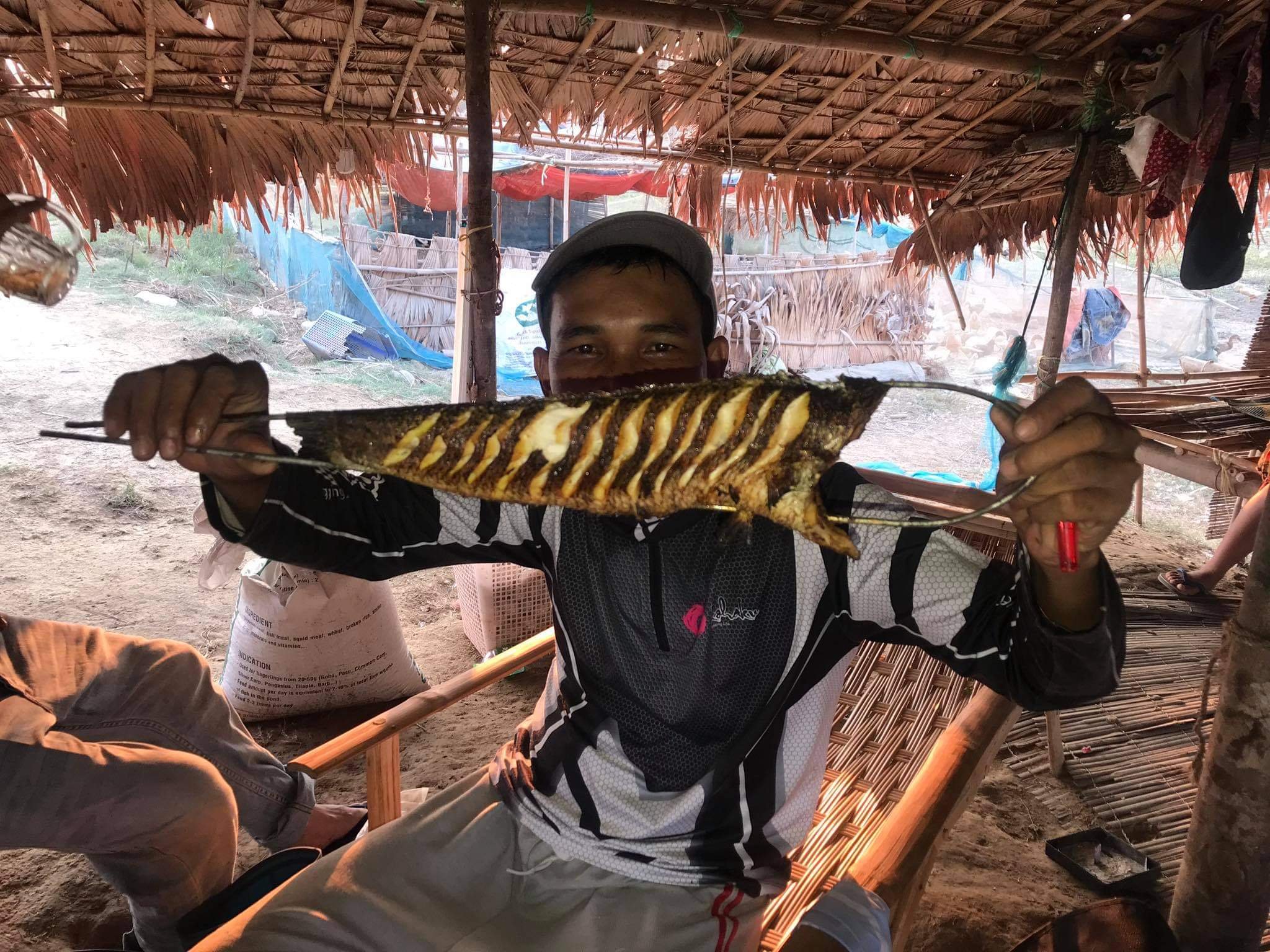 အပေါ်ကစပ်ထားတဲ့အစာကို တစ်ဝက်ခွဲပြီး အစာပေါက်ကြမယ်ဗျာ။အစာပေါက်စရာ လှေတွေဘာတွေ ရှိရင်တော့ အကောင်းဆုံးပေါ့ဗျာ။လှေနဲ့သွားပြီး သွန်ချရုံပဲ လွယ်တယ်လေလှေမရှိတော့ အစာကွက်ဘယ်လို လှမ်းပစ်ရပါ့မလဲ။လက်နဲ့